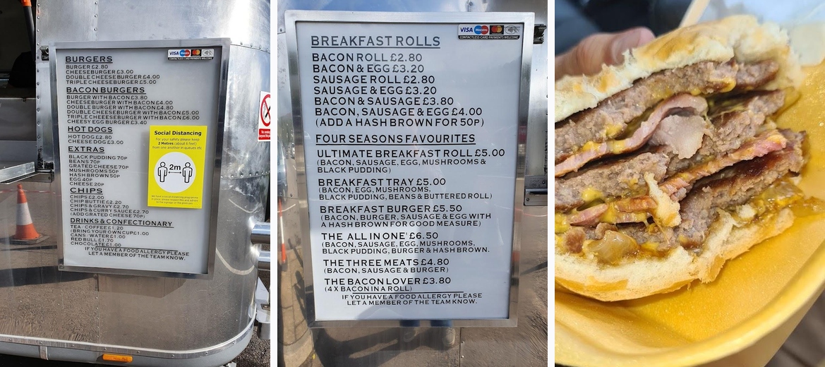 I’m normally a bit wary about road side burger vans but they’re a lovely team and the breakfast tray we had with tea was very nice .. recommended :)